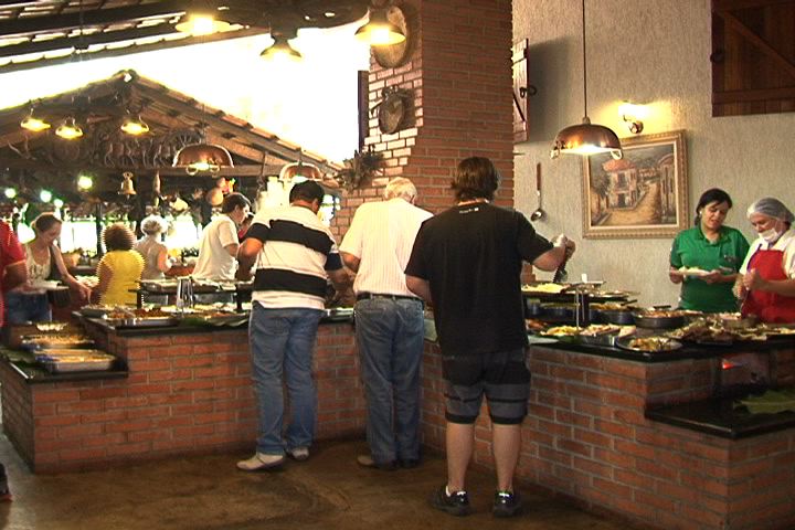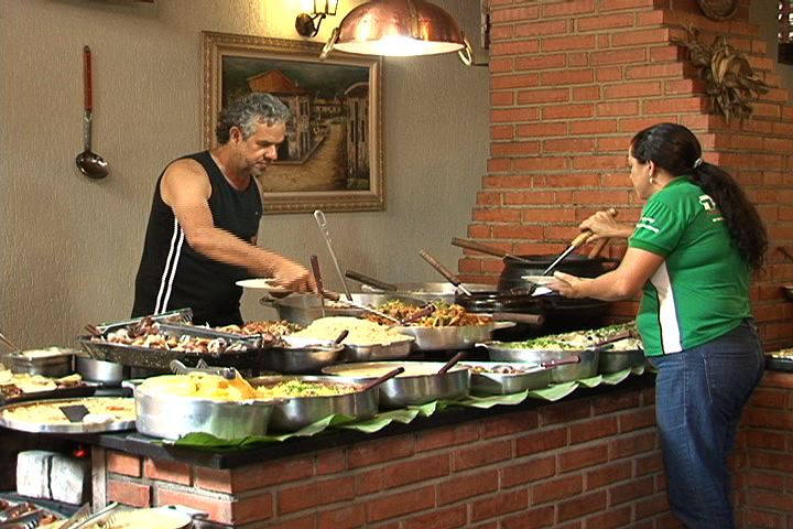 Os clientes têm a disposição um extenso buffet com cerca de 220 pratos, a maioria de inspiração regional e carnes como a picanha ao molho de alho e a costelinha ao molho barbecue. Vale destacar ainda a seção fria da bancada com saladas sofisticadas como a kanikama com camarão, alface e rúcula.